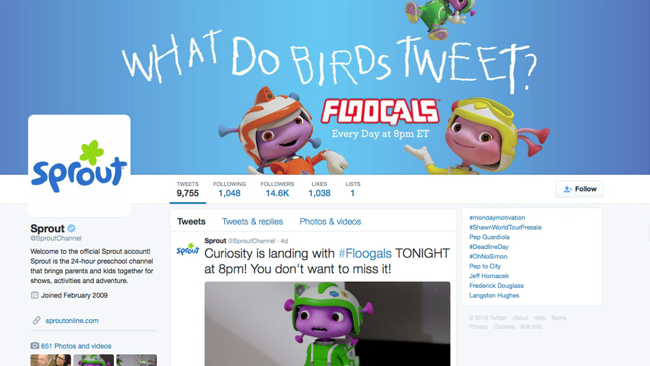 This work has generated over 800,000 views on YouTube, a 10X increase in Facebook “likes” and a 9% increase in new network viewers for the show’s premiere — the largest in ever for Sprout. Within 1 month of the premiere, Floogals was their #1 show, making this campaign the most successful show launch in Sprout’s history.