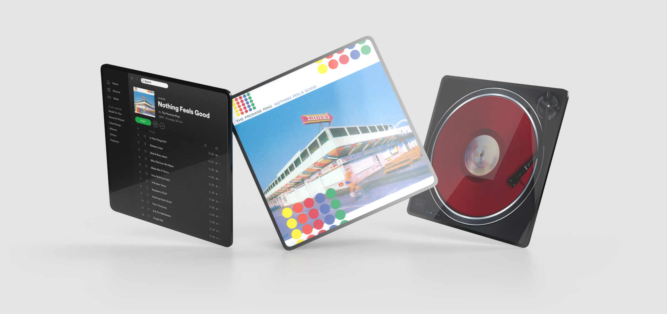 The Sony 1LP is a wireless music player that combines hi-fidelity music streaming with hi-resolution music packaging. Enjoy cover art and liner notes, and use the multi-purpose stand for cover art display or as a virtual turntable, complete with a "warm sound" EQ reminiscent of vinyl records.