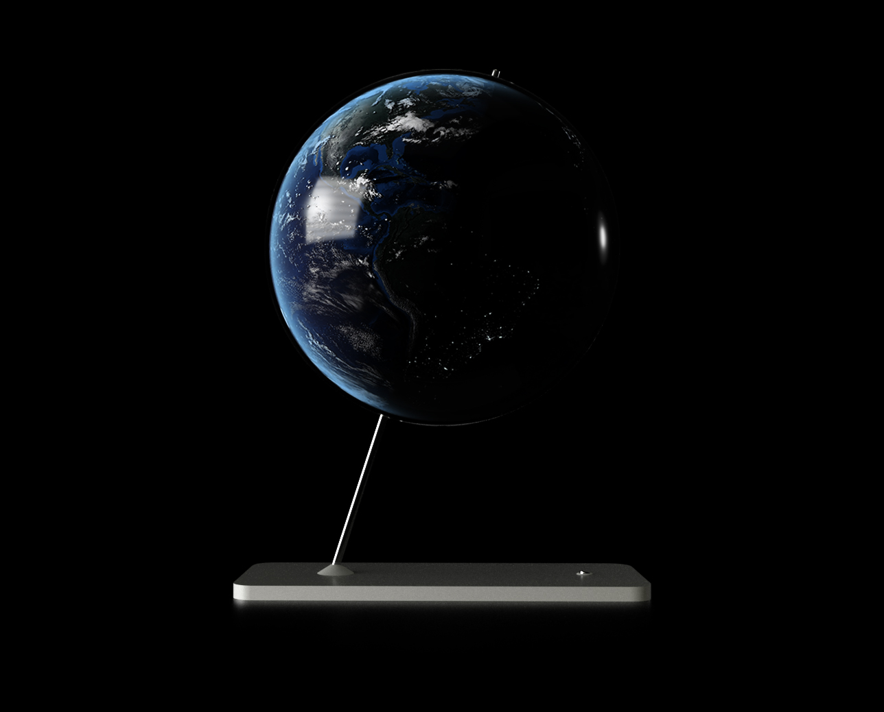 Depicting the currently illuminated and shadowed sides of the earth, the Horizon's globe makes one full rotation every twenty four hours. Using tinted glass, a laser-perforated laminate surface and a hemispherical LED enclosure, the Horizon is neither a traditional globe or clock — but a new way to appreciate our shared experience of time.