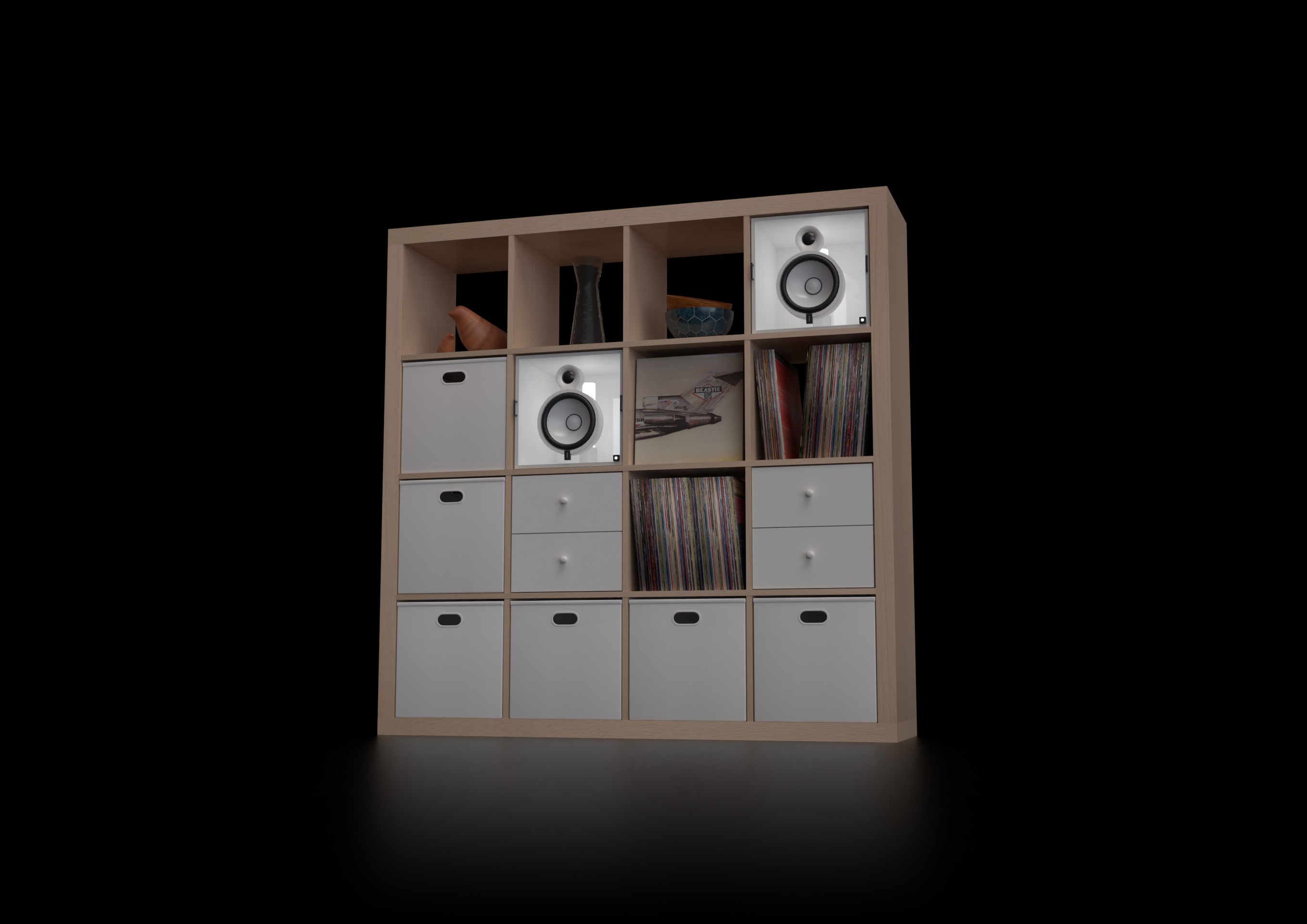 Ljudkub ["you'd-cube"] is a powered stereo speaker and lighting system designed for IKEA Kallax shelving units.