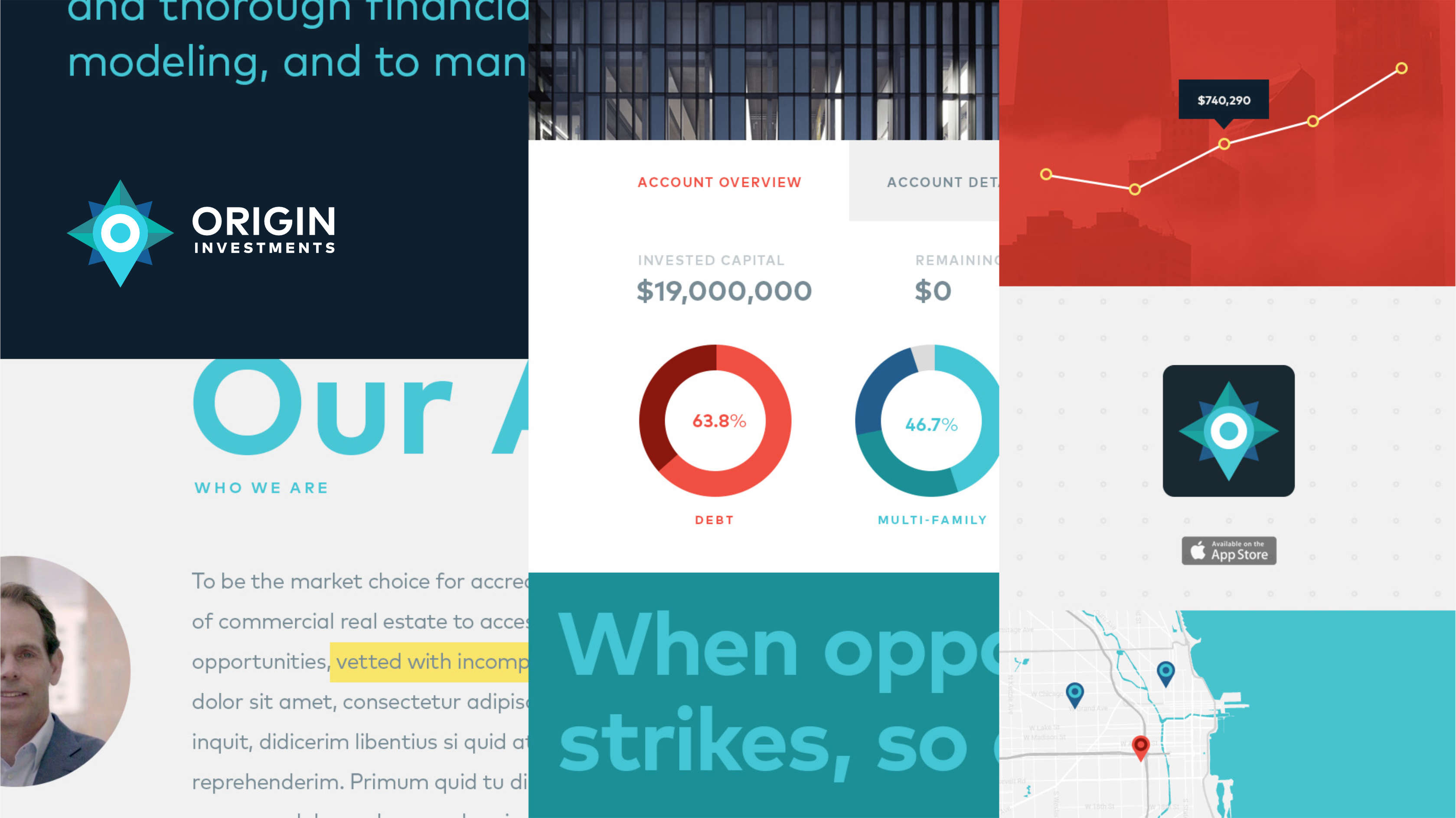 Before partnering with DK, Origin’s identity was established primarily through the use of their original logo. So we started there and built outward to create a more powerful identity system, digital presence, film content and marketing materials. Our approach fully captured their hybrid approach to real estate investing: old-school street smarts meets new-school tech.